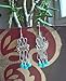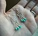 These beautiful chandelier earrings are lovingly handcrafted with turquoise colored faceted glass beads on hand-bent silver plated wire. Sterling silver earwires.